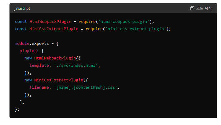 - 웹팩에서 필요한 플러그인을 적절히 설정하여 빌드 성능을 최적화합니다. 예를 들어, HtmlWebpackPlugin, MiniCssExtractPlugin, TerserPlugin 등을 사용할 수 있습니다.
