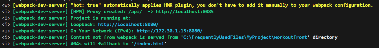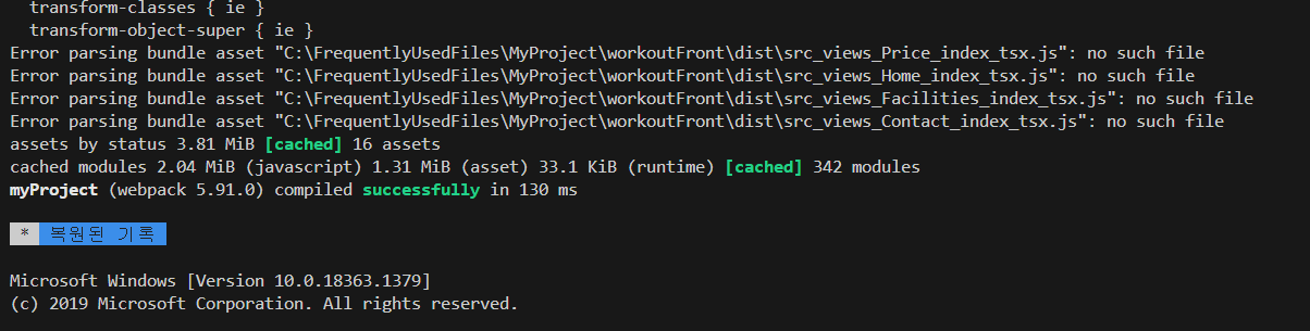실제로 매번 npx webpack serve를 입력해 주었을 때마다. 아래의 과정까지만 처리되고 그 아래 여러과정(그림2)은 나오질 않았다.