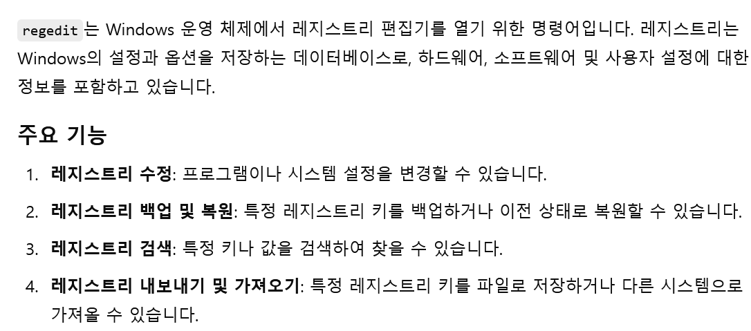 레지스트리는 Windows의 설정과 옵션을 저장하는 데이터베이스이다.