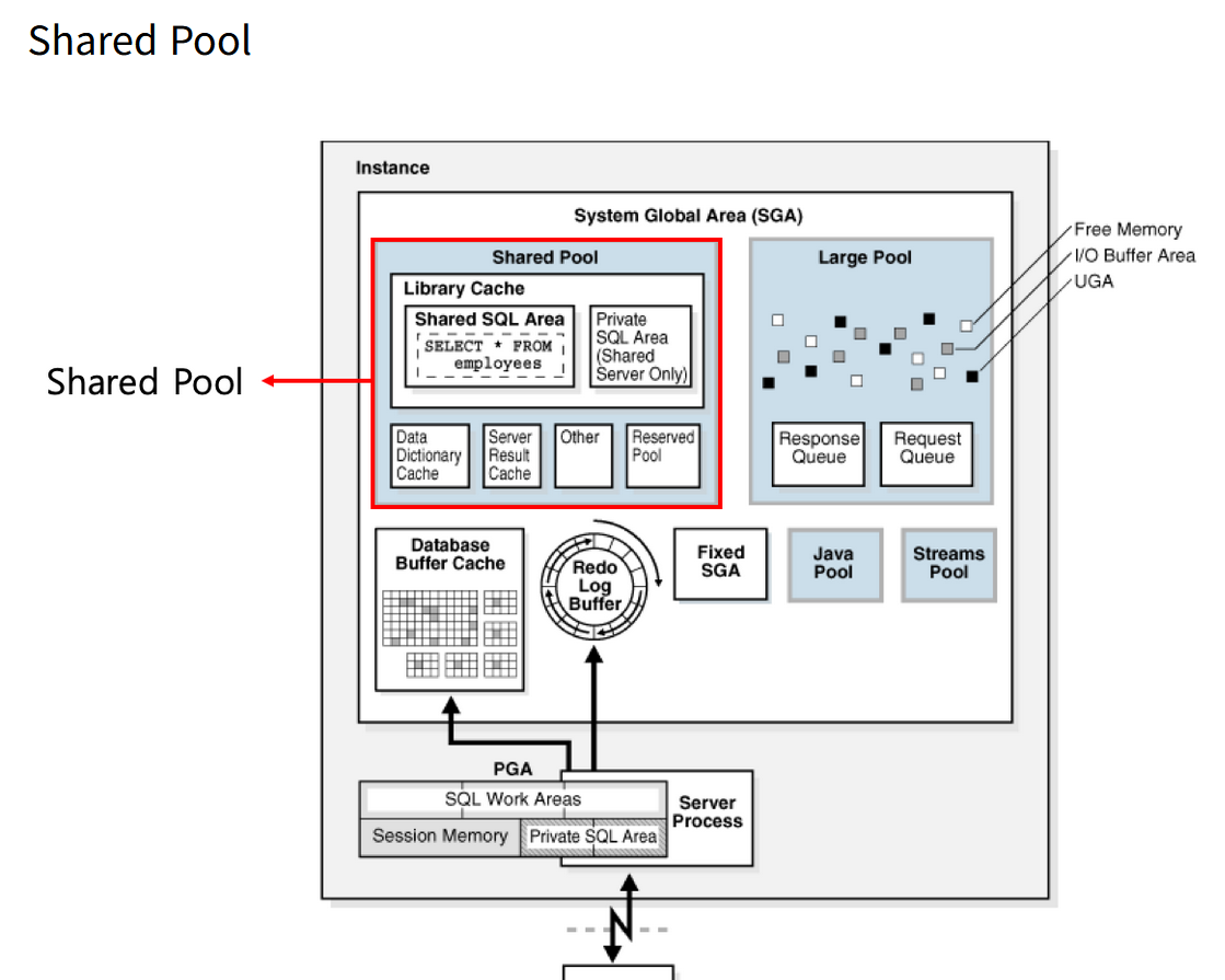 DECLARE로 선언되는 익명 블록은 오라클 서버에서 컴파일되어 SGA(System Global Area)의 SHARED POOL에 위치하지만 소스코드와 컴파일된 코드를 별도로 저장하지는 않는다.