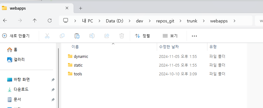 톰켓의 context들이 모여있는 곳이 기본적으로 아래의 webapps폴더이다.
