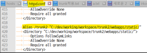 그리고 이러한 httpd.conf문서에서 Document root는 Alias를 이용하여 아래와 같이 변경할 수 있다.