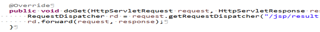 내가 forwarding과제로 했었던 것중에 아래와 같이 getRequestDispatcher라는 함수를 사용한 적이 있는데 이것이 바로 요청의 흐름을 조작(RequestDispatcher)할 수 있는 객체를 얻는 함수인 것이다.