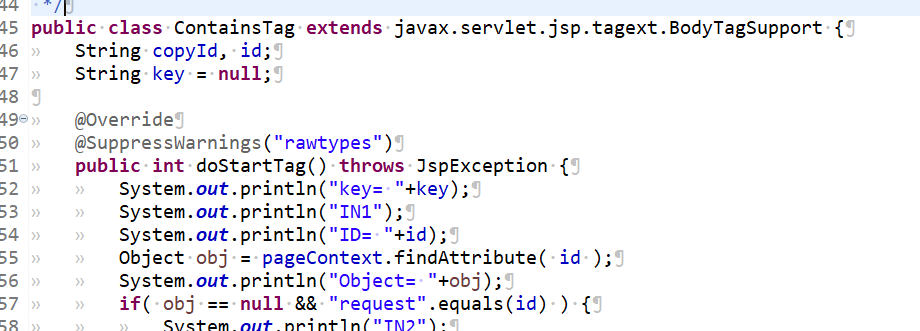 별개로, 아래의 doStartTag에 들어갈 때 id, key등은 이미 JSP파일에서 에서 커스텀 태그의 속성으로 받았던 id, key값이 들어가게 된다.