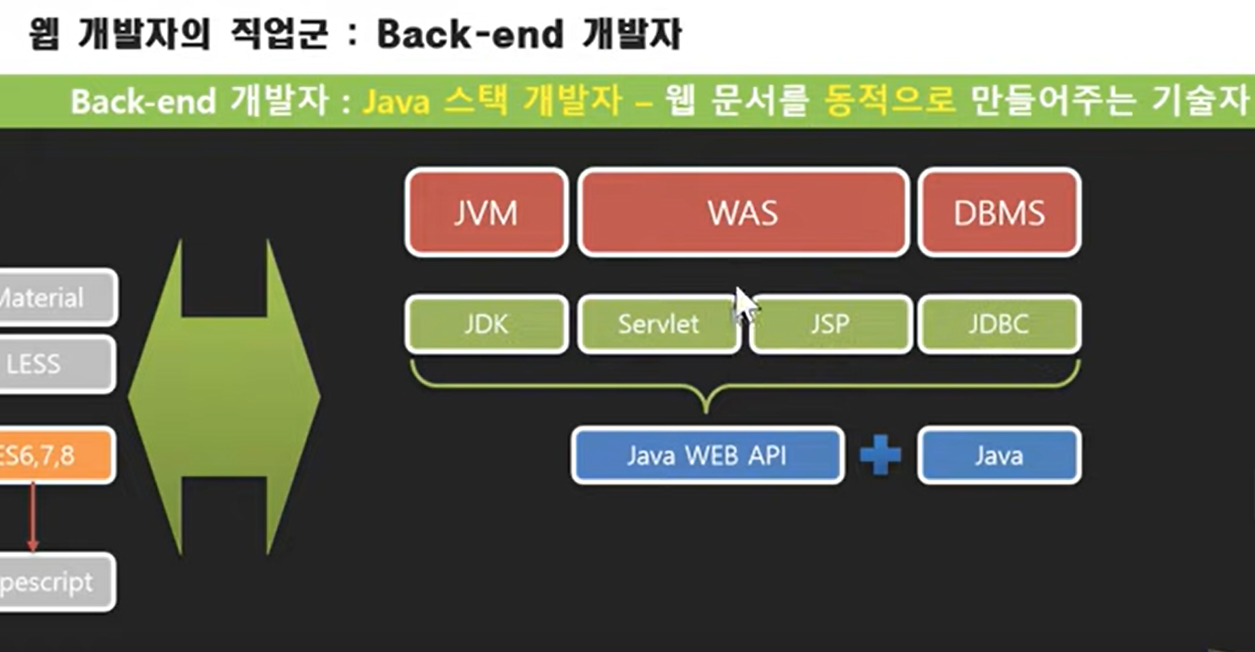 기존에 내가 회사에서 배운것처럼 WAS(톰캣)는 동적인 데이터를 처리하기 위해 존재한다(반면 웹서버는 정적인 문서). 그리고 https://flexyduck.tistory.com/557 에서 본 것(중심내용은 WAR는 WAS의 규칙을 따라야 한다는 것이 었음)과 위의 그림에서 본것처럼 Servlet문서와 JSP문서는 WAS에 포함된다. 즉 Servlet과 JSP가 기본적으로 동적인데이터를 다룬다는 것이다.