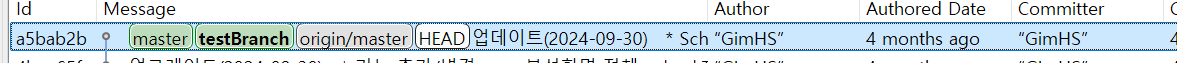 이 많은 하나하나가 모두 각각의 커밋임. 밑으로 갈수록 과거의 커밋이고 맨위가 최신 커밋임.