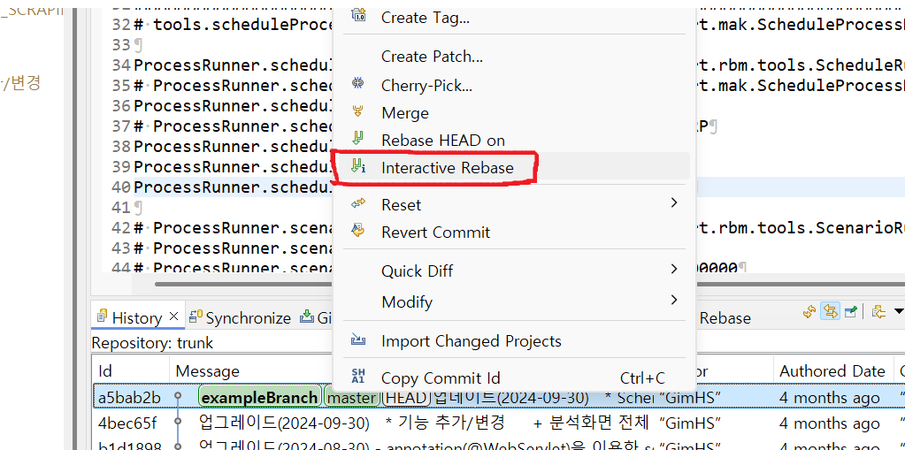 interactive rebase의 선택가능한 옵션들은 다음과 같고 그 의미는 아래와 같다.