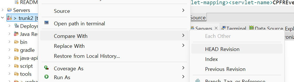 내가 과거에 일부로, 혹은 모르고 지운 파일을 이클립스에서 어떻게 확인하나?