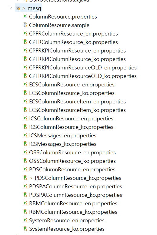 리스트를 출력하는 servlet에서 리스트 테이블 안에있는 column들은 mesg폴더에 있는 아래와 같은 properties들에서 가져오게 된다.