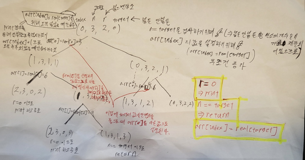 #구체적 값의 지정이 arr[index]=real[target]와 같고 재귀함수호출부분에서 아래와 같이 매개변수가