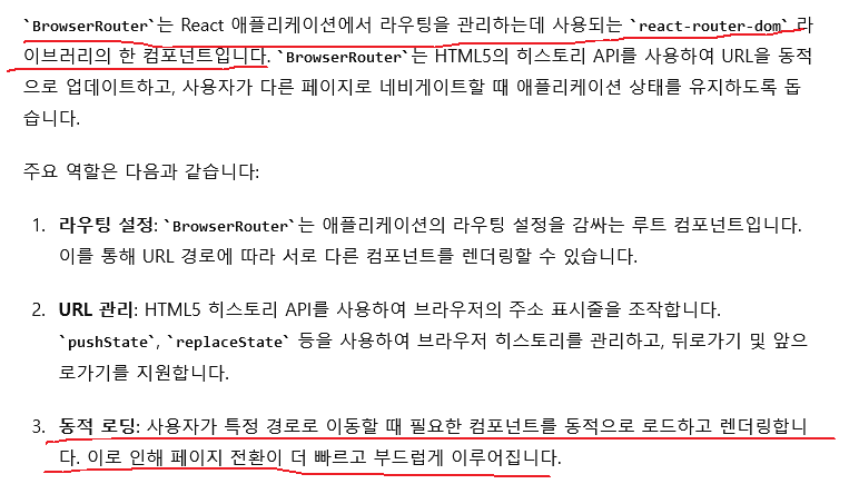 즉 경로에 따른 라우팅, 렌더링, 로딩해주는 것이 BrowserRouter의 역할은 것이다. 근데 에러메시지를 보면 로딩하는데 로더가 추가로 필요할 수 있다는 것이다. 즉, @pmmmwh 로더만으로는 부족할 수 있다는 것!!!